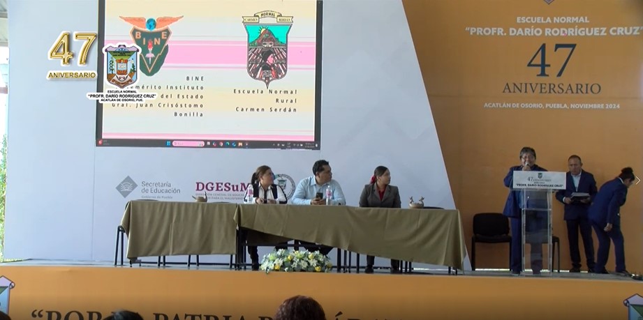 La institución ofrece la Licenciatura en Educación Preescolar, Licenciatura en Educación Primaria y Licenciatura en Enseñanza y Aprendizaje en Telesecundaria. Se identifica con un escudo representativo del 47 aniversario de esta institución educativa, realizado del 7 al 8 de noviembre del 2024.